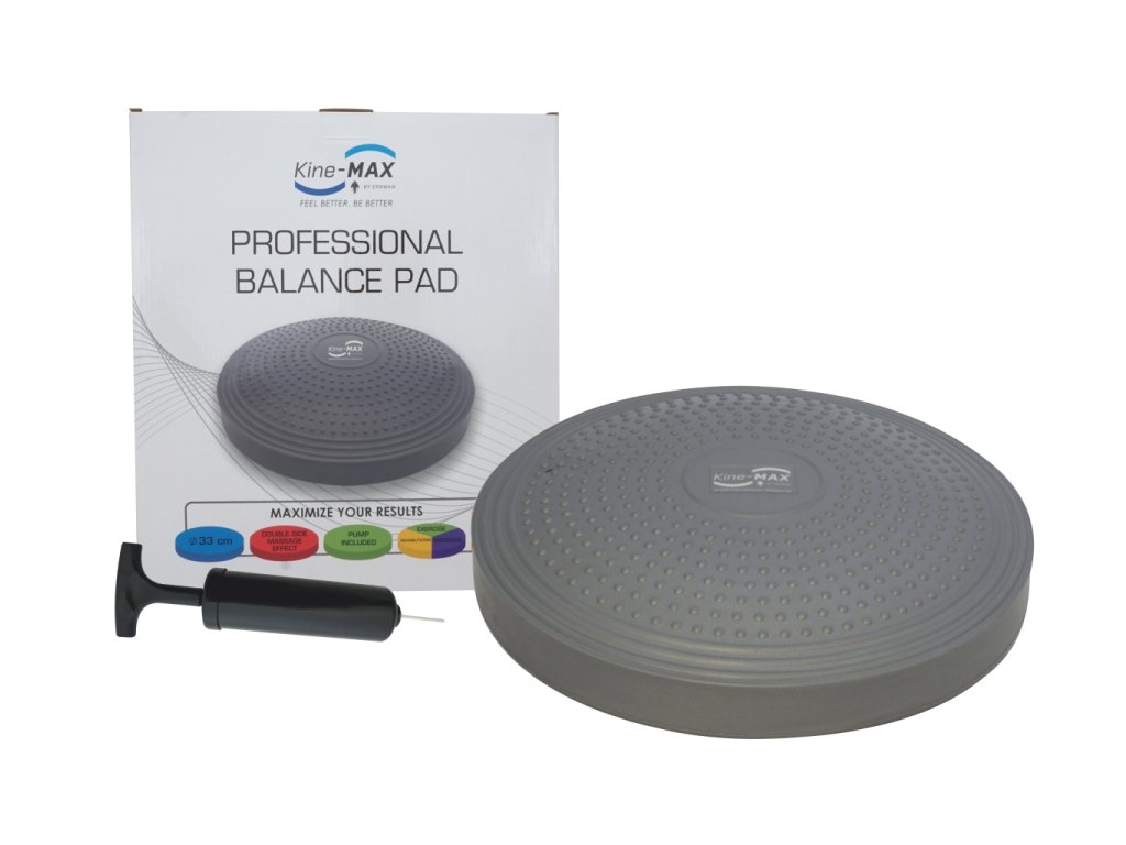 Kine-MAX BALANCE PAD pomáhá rozvíjet koordinaci pohybu, vyrovnává disbalance svalových partií, odbourává stres a svalové napětí. Podložka je vhodná při sedavém zaměstnání, kdy zlepšuje držení těla a odbourává nepříjemné bolesti zad. Kine-MAX BALANCE PAD je z každé své strany opatřena výstupky, které jsou nejen protiskluzové, ale zároveň mají i masážní/akupresurní efekt – zlepšují tedy prokrvení a působí na akupresurní body. Výstupky jsou na obou stranách podložky odlišné, tak aby si každý uživatel, mohl vybrat co je mu příjemné. Využití balanční podložky je velmi populární pro maximální zvyšování výkonu sportovců ve všech sportovních disciplínách. Balanční podložky nacházejí čím dál větší uplatnění v běžném životě, při úlevě od bolesti, rehabilitaci a celkovém zlepšení zdravotního stavu.
