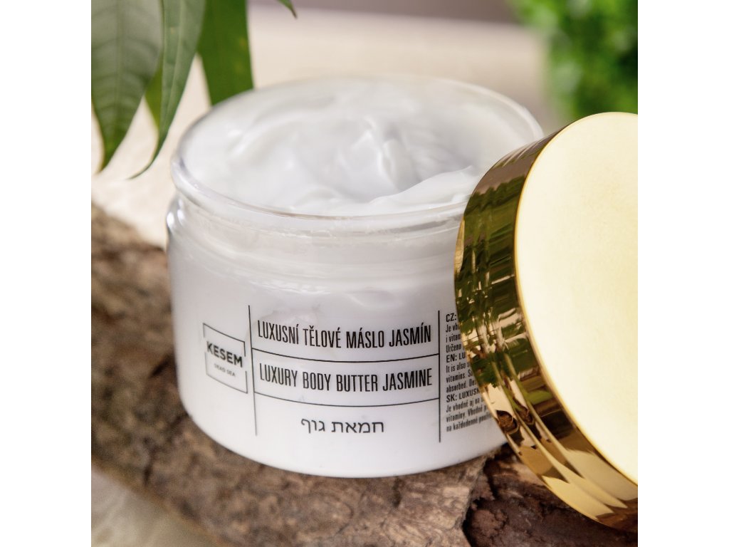 Dodání 3-4 pracovní dny. Luxusní tělové máslo jasmín KESEM s minerály z Mrtvého moře důkladně vyživuje a hydratuje pokožku do hloubky. Regeneruje suché části kůže, zjemňuje a zanechává příjemný pocit na těle s okouzlujícím aroma jasmínu. Obsahuje vodu a minerály z Mrtvého moře, bambucké máslo, výtažky z Aloe vera, přírodní oleje a vitamíny E a B5. Zklidňuje unavenou a podrážděnou pokožku, rychle se vstřebává, je vhodné pro citlivou i problematickou pokožku a je vhodné i pro děti. Bez parabenů a ropných derivátů.