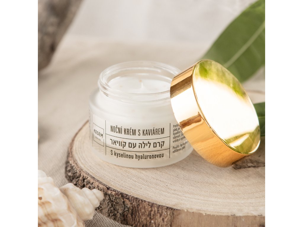 Dodání 3-4 pracovní dny. Noční krém s kaviárem a kyselinou hyaluronovou KESEM s obsahem vody a minerálů z Mrtvého moře je elixírem mládí. Stal se prevencí proti vráskám, zpomaluje proces stárnutí, hydratuje a zpevňuje. Pokožka je po nanesení hebká, jemná a vyhlazená. Díky kaviáru a kyselině hyaluronové bude Vaše pleť věží a pružnější. Vhodný pro všechny typy pleti, primárně však pro smíšenou až suchou pleť.