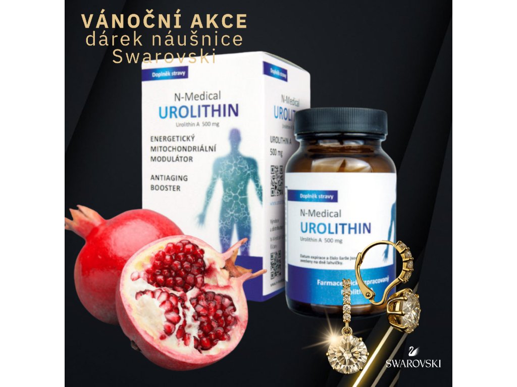 Vánoční AKCE – náušnice Swarovski jako DÁREK! UROLITHIN N-Medical je nová vycházejí hvězda mezi antiaging látkami. Působí jako mitochondriální metabolický modulátor. Zvyšuje množství energie v buňkách. Užívání urolithinu pozitivně ovlivní činnosti buněk, svalů, mozku a metabolismu.