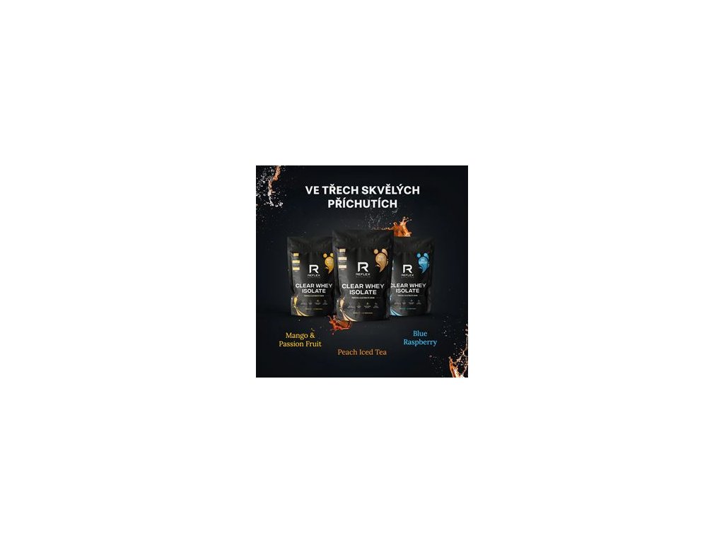 Clear Whey Isolate s novými příchutěmi je tu! Proteinový drink s elektrolyty v osvěžující ovocné formě! Clear Whey se míchá s vodou a je určený pro osvěžení a regeneraci svalové hmoty. Pokud chcete doplnit denní dávku proteinu, ale nechcete klasický proteinový "milkshake", je pro vás Clear Whey ideální! Clear Whey je dostupný ve třech lahodných ovocných příchutích - mango a mučenka, borůvka a broskvový ledový čaj.