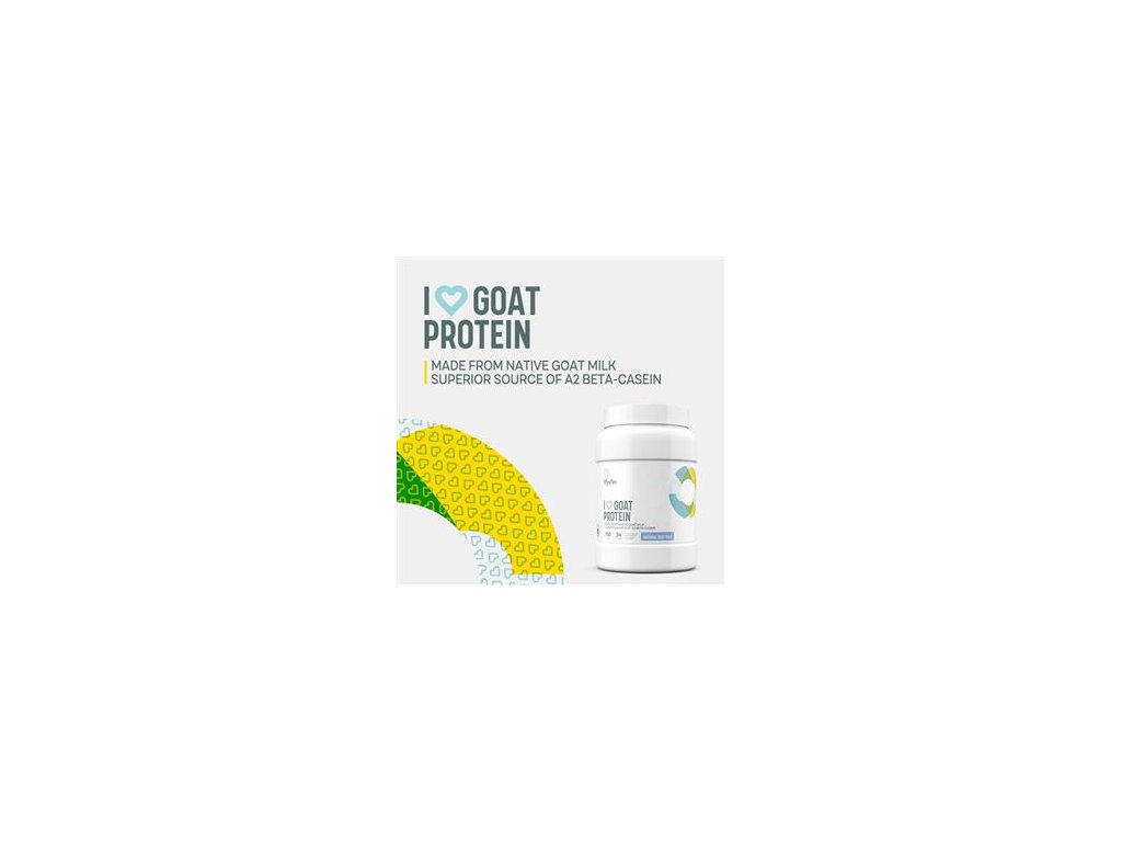Z čisté krajiny rakouských Alp a Bavorska I Love Goat Protein představuje další milník značky MyoTec v cestě za co nejpokročilejšími a nejčistšími doplňky stravy. Proteiny pocházející z klasického A1 mléka (od plemen jako je Holštýnský nebo Fríský skot) nebo syrovátky jsou pro velké množství lidí obtížně stravitelné. Mléko určitých druhů krav (například Guernsey nebo Jersey) a koz ale obsahuje více tzv. A2 kaseinu, který je podobnější kaseinu obsaženém v lidském mléce a proto jej náš zažívací trakt lépe snáší. I Love Goat Protein pochází od koz chovaných přirozeně na volné pastvě v čisté krajině rakouských Alp, Bavorska a dalších vybraných evropských lokalit. Narozdíl od koz chovaných ve chlévech tak zcela odpadá jakékoli chuťové nebo pachové zabarvení. I Love Goat Protein naopak vyniká čistou chutí i vůní. Výroba suroviny a zpracování mléka probíhá exkluzivně v Rakousku, a to včetně finálního balení produktu. Samozřejmostí je, že produkt je GMO free, rBGH (rBST) free, bez obsahu umělých sladidel, syntetických složek a balastních aditiv. Pokud hledáte čistý mléčný zdroj bílkovin a klasické kravské mléko je pro vás příliš těžké na trávení, I Love Goat Protein je nejlepší možná volba. I Love Goat Protein změní váš pohled na kozí produkty.