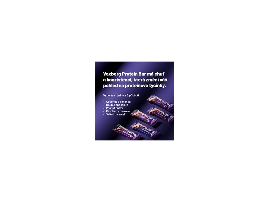 Měkká, čokoládová, s náplní, která vás překvapí. Bez přidaného cukru. 28 % bílkovin. Prémiová chuť bez kompromisů. Zapomeňte na tvrdé proteinové tyčinky. Voxberg Protein Bar má chuť a konzistenci, která změní váš pohled na proteinové tyčinky. Voxberg Protein Bar spojuje jemný vnitřek s křupavými kousky ořechů, ukrytými v polevě z pravé čokolády – pro zážitek, který překvapí při každém soustu.