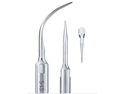 S1 – univerzální koncovka pro scaling s půlkruhovým průřezem, určená k efektivnímu odstranění zubního kamene na velkých plochách všech povrchů zubů. Vyrobena z leštěné lékařské nerezové oceli pro hladký povrch a dlouhou životnost.