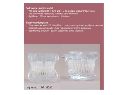 Model Real Series Endodontic Practice je profesionální pomůcka určená pro praktický trénink endodontických postupů. Umožňuje realisticky zobrazit anatomii zubů s kanálky v pozicích FDI 11–16 a 41–46, které jsou označeny stříbrnými liniemi. Díky...