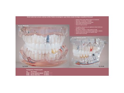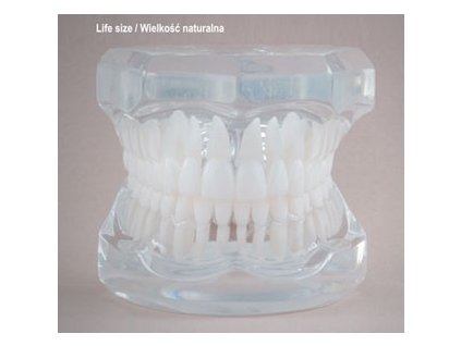 Real Series Stomatologický Model představuje realistický stomatologický model s transparentní konstrukcí, který přesně zobrazuje ideální okluzní vztahy zubů. Transparentní provedení umožňuje detailní sledování anatomie chrupu a kořenů, což je...
