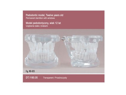 Real Series Model Pedodontický věk 12 let je špičkovým vzdělávacím a tréninkovým nástrojem pro stomatology, ortodontisty a studenty dentálního oboru. Průhledný model s trvalou denticí obsahující charakteristické mezery umožňuje detailní studium...