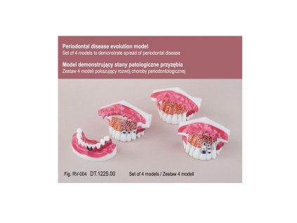 Sada Real Series představuje profesionální vzdělávací pomůcku, která názorně zobrazuje různé fáze parodontologických onemocnění – od zdravého parodontu až po pokročilou parodontitidu s úbytkem kosti a ztrátou zubů. Modely jsou zpracovány s vysokou...