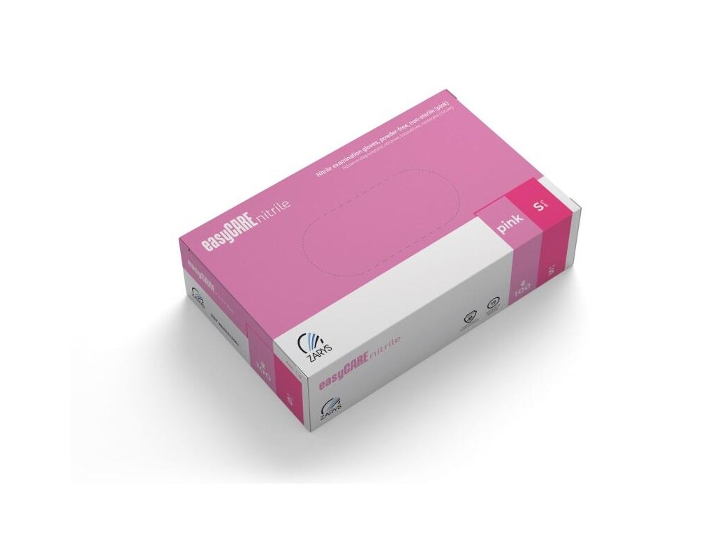 Rukavice nitril bez pudru easyCARE S - růžové 100 ks S Růžové nitrilové vyšetřovací rukavice bez pudru pro profesionální použití