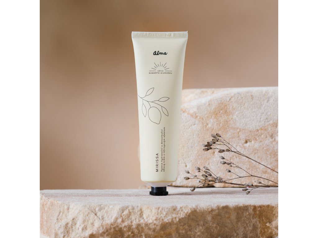 Tělový krém MIRISSA s vysokou hydratační a detoxikační schopností nabízí intenzivní péči založenou na propojení ájurvédských bylin a přístupů inspirovaných biohackingem. Obsahuje šest vzácných rostlin tradičně využívaných v ájurvédě a aktivní látky podporující přirozenou tvorbu kolagenu v pokožce. Krém má výrazně výživnou konzistenci bez přidané vody, což zvyšuje jeho účinnost a rychlost viditelného efektu. Vůně, ve které se propojuje kardamom, vanilka a limetka, působí hřejivě, osvěžuje a celkově uvolňuje.
