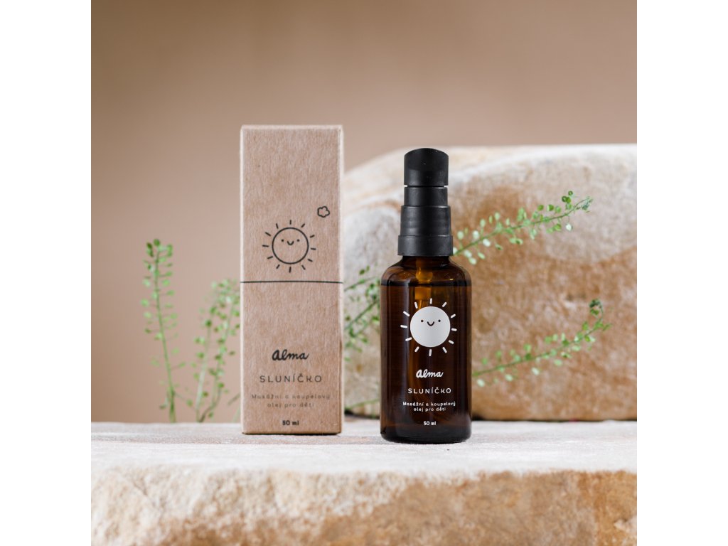 Sluníčko je masážní a koupelový olej pro děti s jemnou vůní mandarinky, který podporuje pocit bezpečí a pohody během koupacího rituálu. Organické složky, včetně meruňkového, mandlového a slunečnicového oleje a extraktu měsíčku, vyživují a chrání pokožku všech typů, zatímco vitamin E přispívá k její regeneraci. Olej je dermatologicky testovaný od narození a vhodný pro každodenní jemnou péči a masáže.