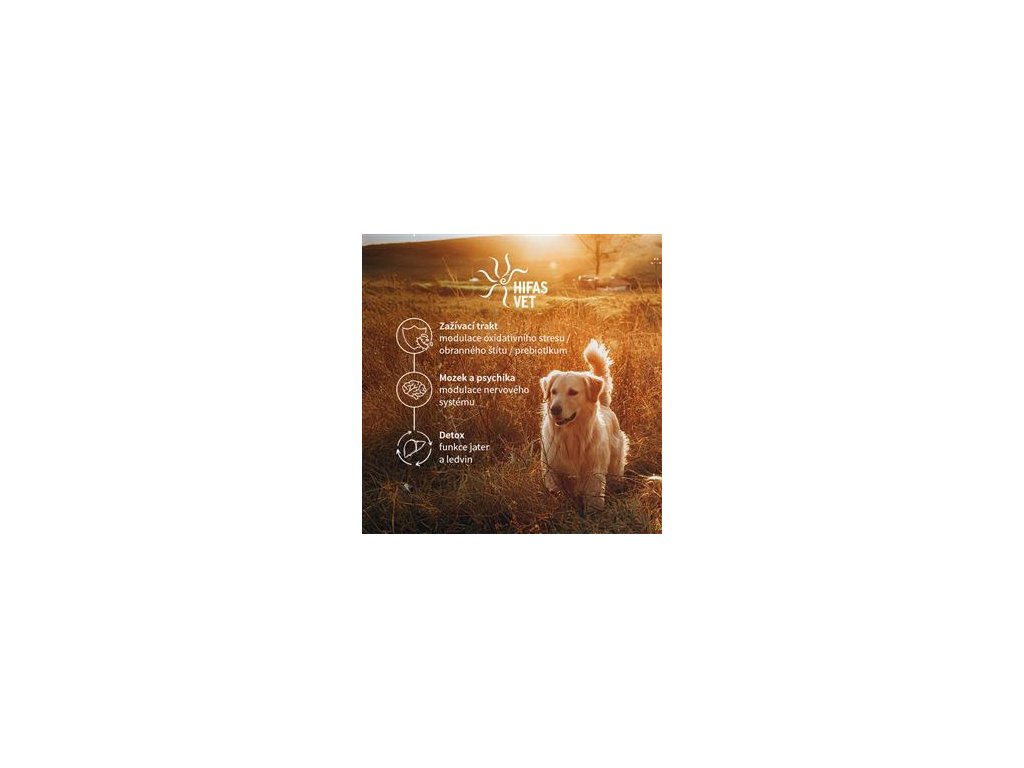 HifasGut&BrainPet Hifas Gut & Brain Pet je doplňek výživy pro psy a kočky s obsahem bioaktivních látek z adaptogenních hub a další bioaktivních složek zaměřených na oblast trávícího traktu, psychiky a detoxu. Je ve formě tekuté suspenze, kterou mohou zvířata bez problémů konzumovat z misky. Hodí se pro všechny plemena psů i koček jakéhokoli stáří. Adaptogenní houby pro psy a kočky / Trávení, psychika a detox / Ve formě tekuté suspenze / Balení obsahuje lahvičku a dávkovač Mechanismus účinku