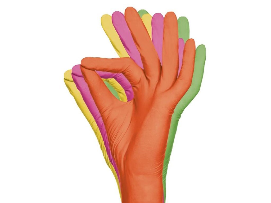Barevný mix (oranžová, růžová, žlutá, zelená) dodává rukavicím moderní vzhled a umožňuje jejich praktické využití v různých provozech. Rukavice splňují AQL 1,5 a normy EN 455 a EN 420, což zaručuje jejich kvalitu a bezpečnost.