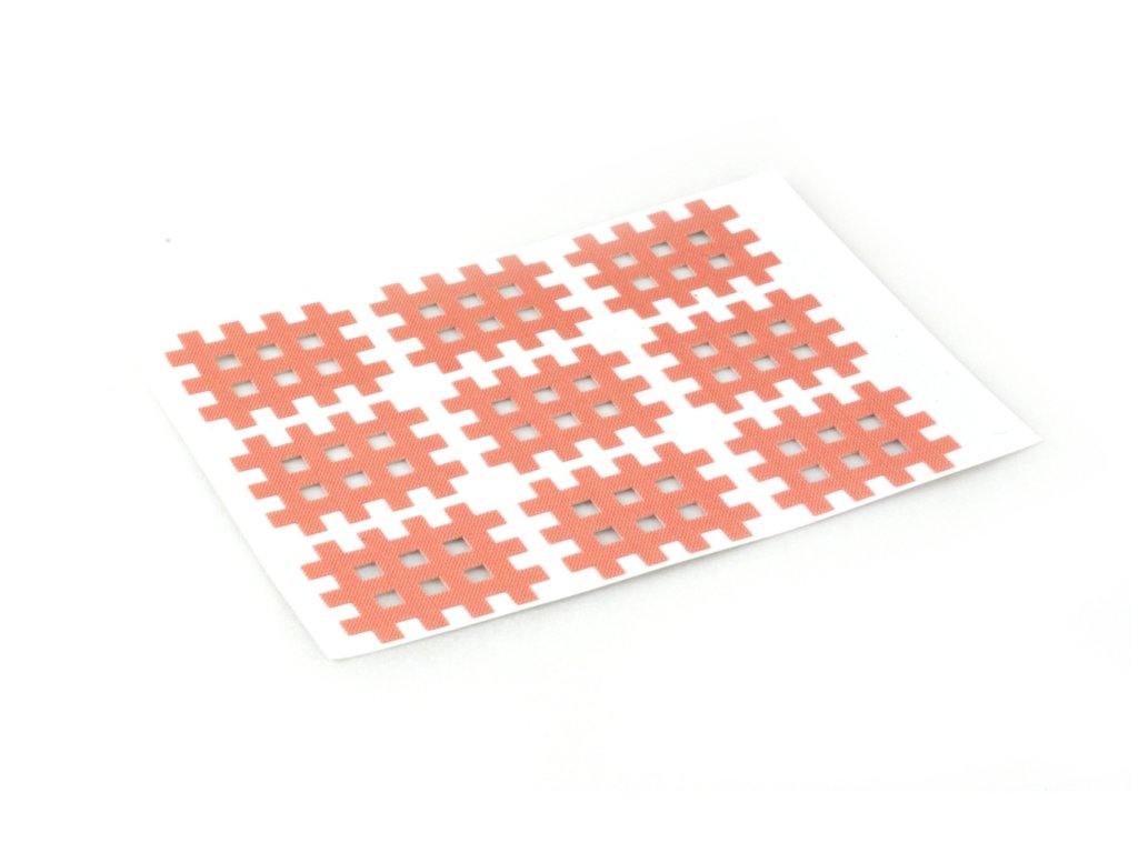 Kine-MAX Cross tape je neelastická páska ve tvaru mřížky, používá se k podpůrné léčbě jizev, stimulaci spoušťových, akupunkturních a reflexních bodů.