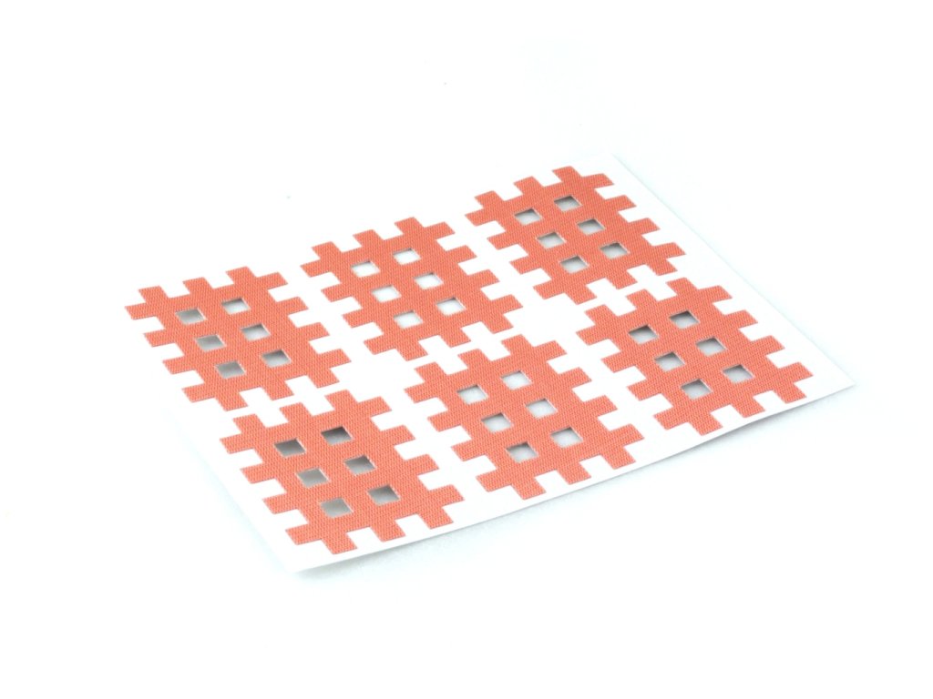 Kine-MAX Cross tape je neelastická páska ve tvaru mřížky, používá se k podpůrné léčbě jizev, stimulaci spoušťových, akupunkturních a reflexních bodů.