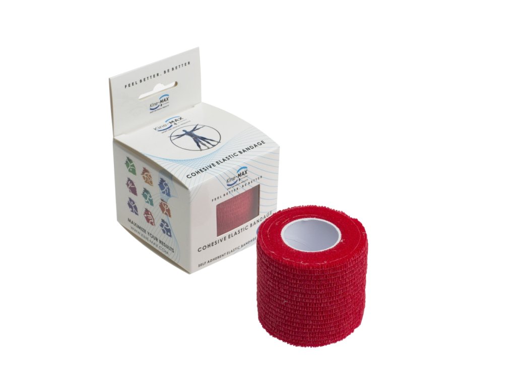 Kine-MAX Cohesive Elastic Bandage - Elastické samofixační obinadlo (kohezivní) 5cm x 4,5m - červené Samofixační elastické obinadlo pro spolehlivou a pohodlnou fixaci