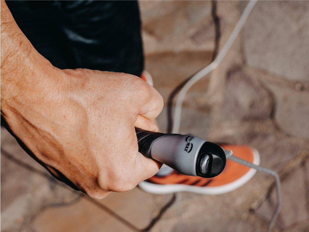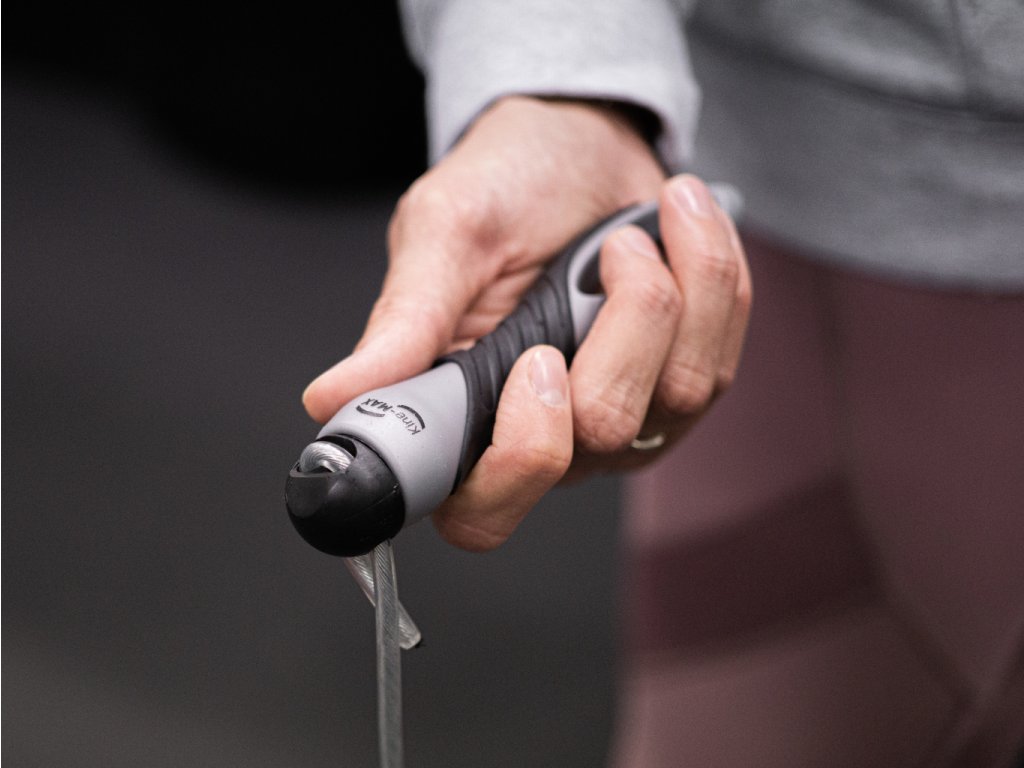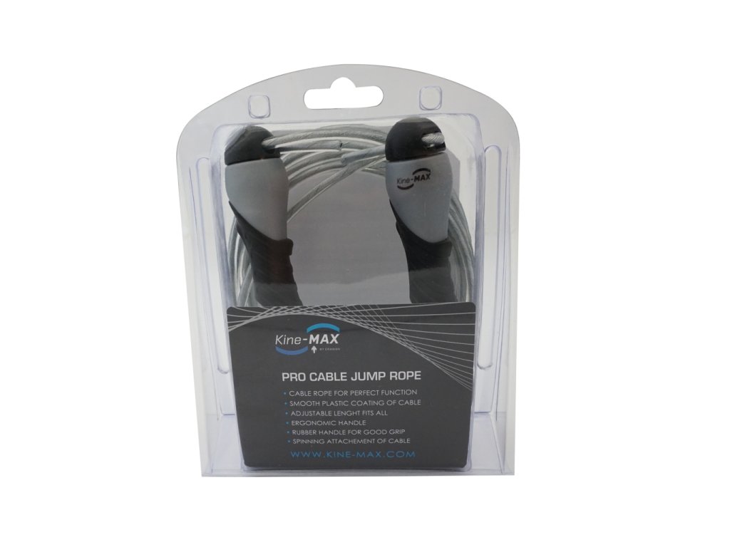 KineMAX Pro Cable Jump Rope je švihadlo s možnosti nastavení délky lanka, chytré uchycení lanka umožňuje jeho protáčení a tudíž se lanko nezamotává. Švihadlo má velmi příjemné pogumované rukojeti které zabraňují klouzání i se zpocenými rukami. Švihadlo pomáhá k posílení veškerých svalů v těle a zvyšuje odolnost kardiovaskulárního systému. Ideální pomůcka do crossfitových a intenzivních kruhových tréninků, ale i pro všechny, kteří si chtějí zlepšit kondici.