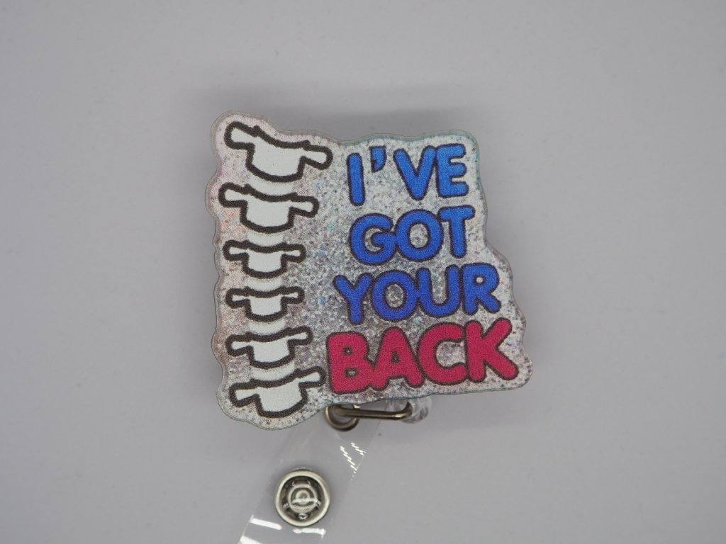 🦴💙 Oživte svůj pracovní outfit touto originální ID visačkou s motivem páteře a nápisem „I’VE GOT YOUR BACK“!