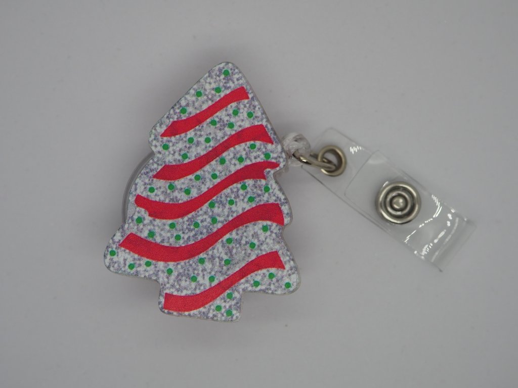 🎄❤️ Oživte svůj pracovní outfit touto kouzelnou ID visačkou ve tvaru vánočního stromečku s červeným vánočním řetězem!