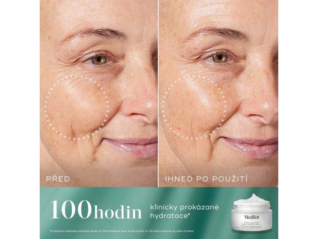 ¹ Nezávislá klinická studie na 33 dobrovolnících s produktem Total Moisture Daily Facial Cream po dobu 2 týdnů