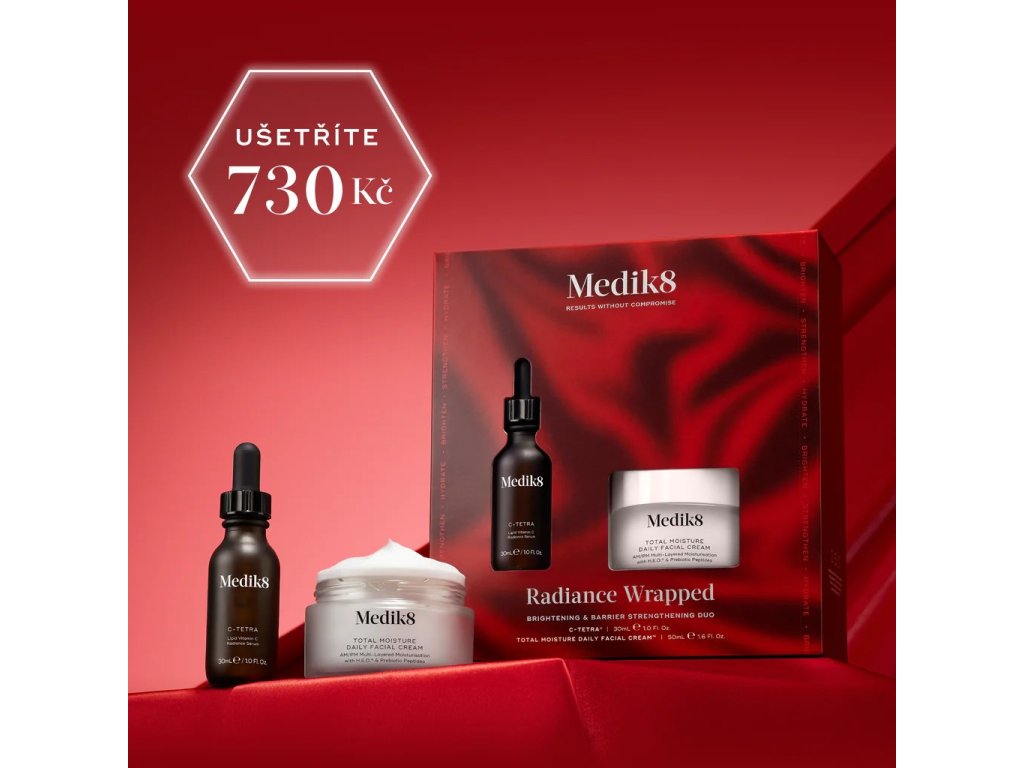 Proto Medik8 používá extrémně stabilní formu vitamínu C (Tetrahexyldecyl Ascorbate), která si udržuje plnou sílu a účinnost až 12 měsíců po otevření.