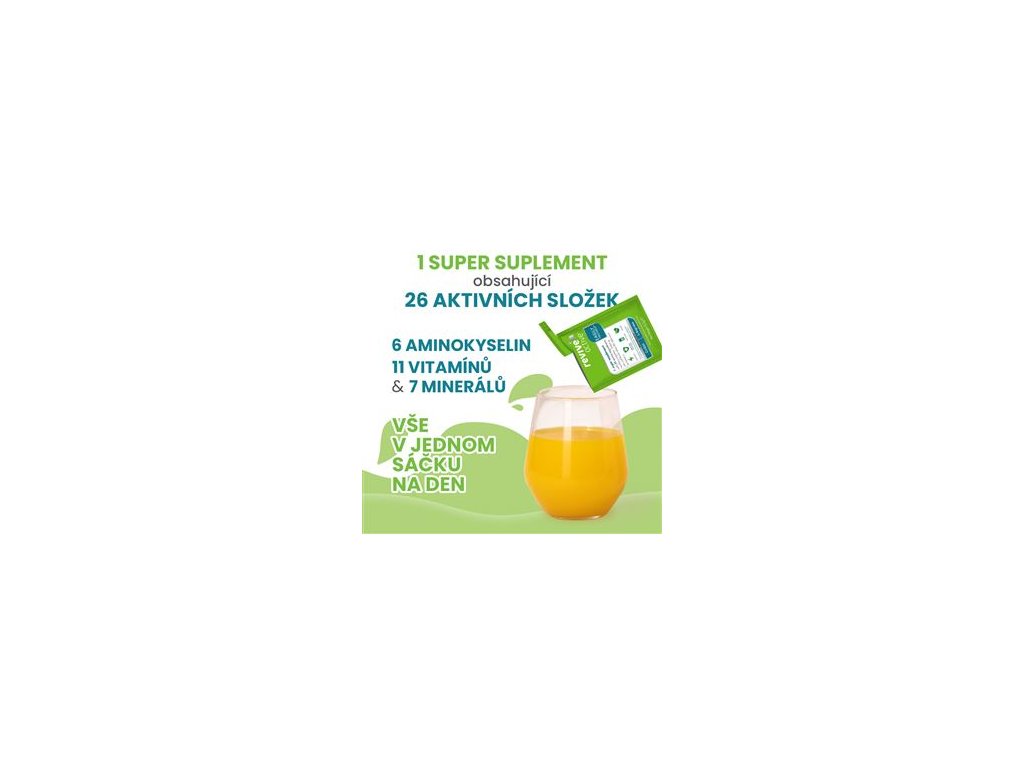 - 11 vitamínů, 7 minerálů, 6 aminokyselin, koenzym q-10 a L-arginin