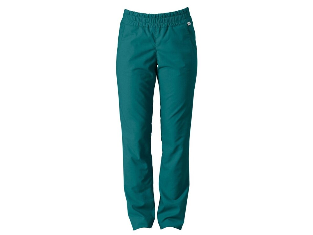 Dodání 4-5 pracovních dnů. Dámské kalhoty BEQUEME 7days – OPALGRUN, úzký střih s elastickým pasem a dvěma bočními kapsami. Materiál: 50 % bavlna, 50 % polyester. Vhodné pro praní až na 95 °C i do sušičky. Ideální pro zdravotnický personál, kosmetické salony, wellness a spa centra, kombinovatelné s halenkami stejné značky.