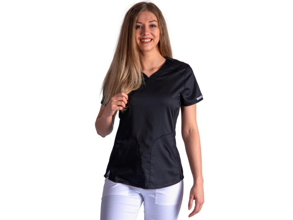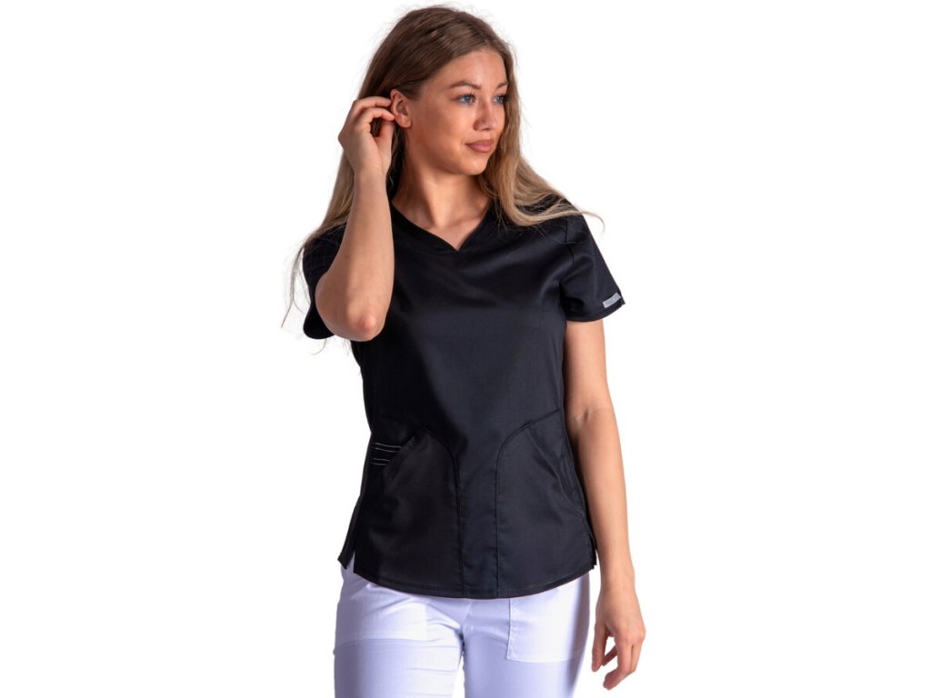 Pohodlí a praktičnost: Halena je navržena s ohledem na potřeby zdravotnického personálu, který ocení její komfort i funkčnost. Díky elastickým vsadkám se halena krásně přizpůsobí postavě, aniž by omezovala v pohybu. Navíc materiál je odolný proti zmačkání, snadno se pere a rychle schne.