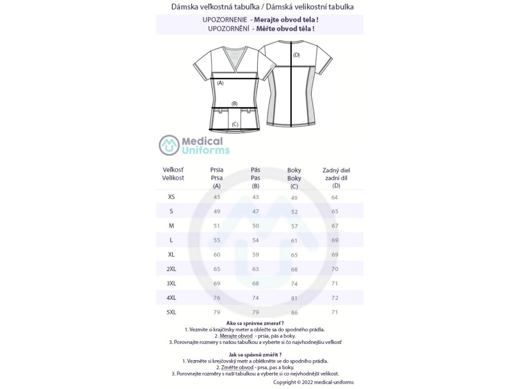 Pro dokonalý vzhled ji lze kombinovat s odpovídajícími zdravotnickými kalhotami z nabídky Medical Uniforms, případně doplnit o kvalitní zdravotnickou obuv nebo stetoskop.